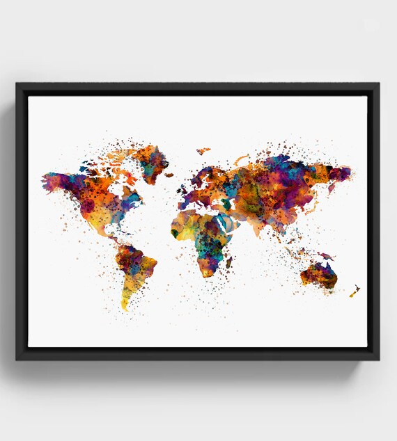 Colorful Map of the World, INSTANT DOWNLOAD, Watercolor Painting