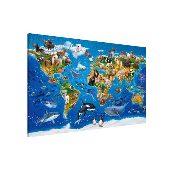 Magnetic Board World Map With Animals Memoboard Magnetic Etsy