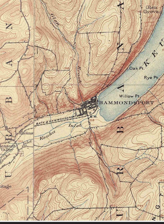 Keuka Lake 1903 USGS Old Topographic Map Custom Composite Reprint