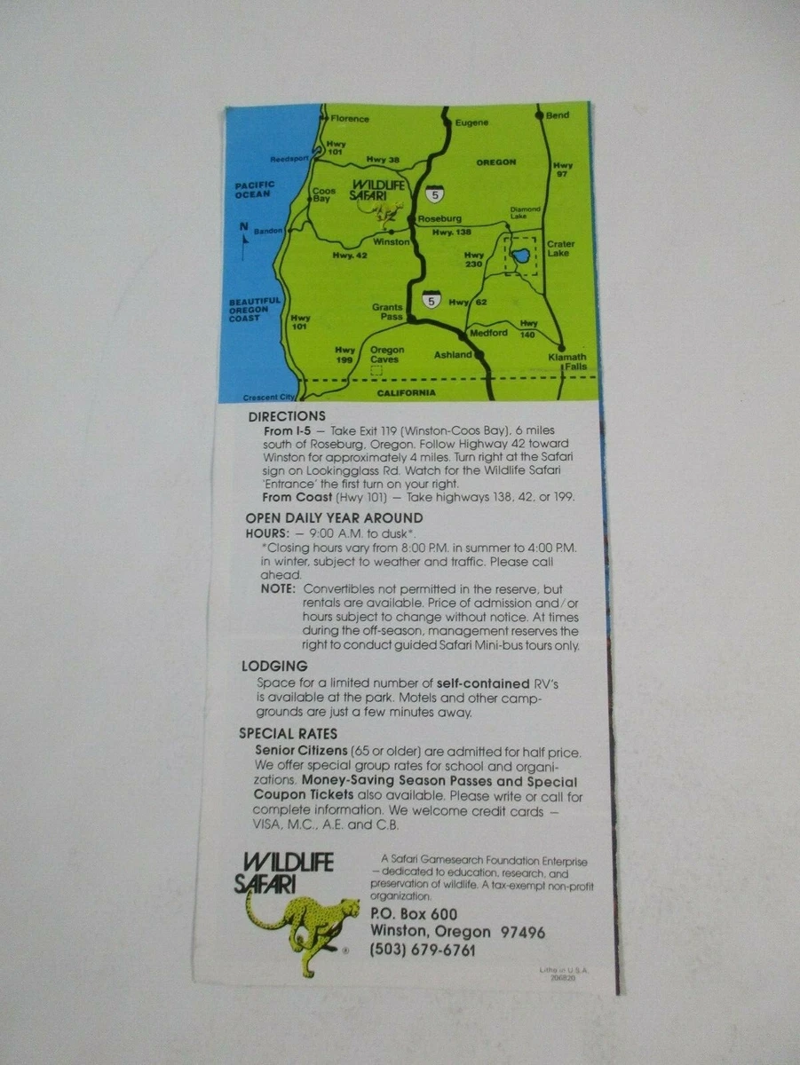 c1980 Wildlife Safari Reserve Park Brochure Winston Oregon Photos
